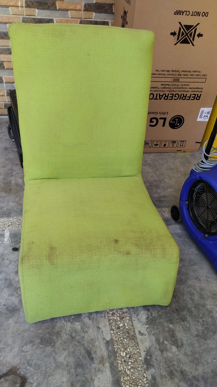Pembersihan soft furniture menggunakan proses pencucian yang profesionall.